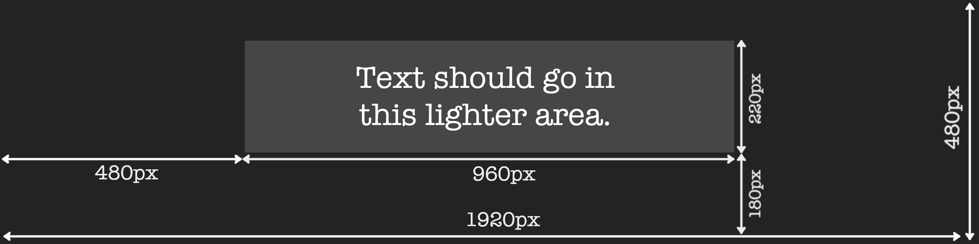 1920x480(WxH). - Text within the cover image should be restricted to the center portion of the image. This is because the image width will be considerably smaller on mobile screens, and its height is restricted on larger screens.